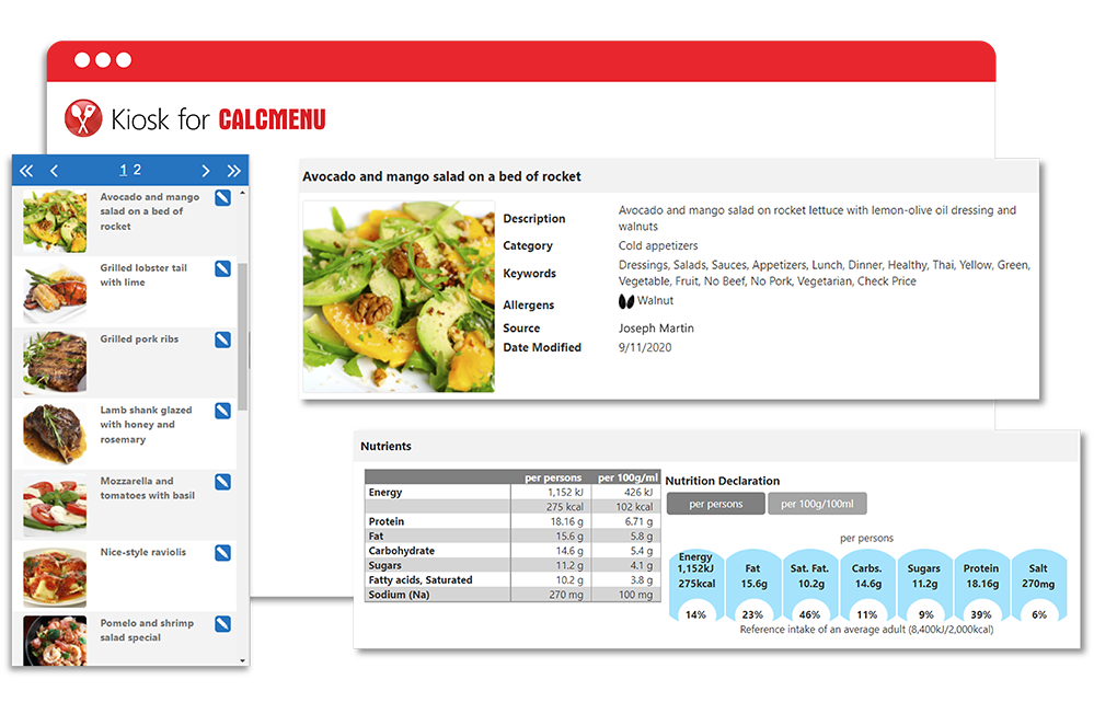 You can access the Kiosk for CALCMENU online anytime, anywhere, from your mobile devices and tablets.